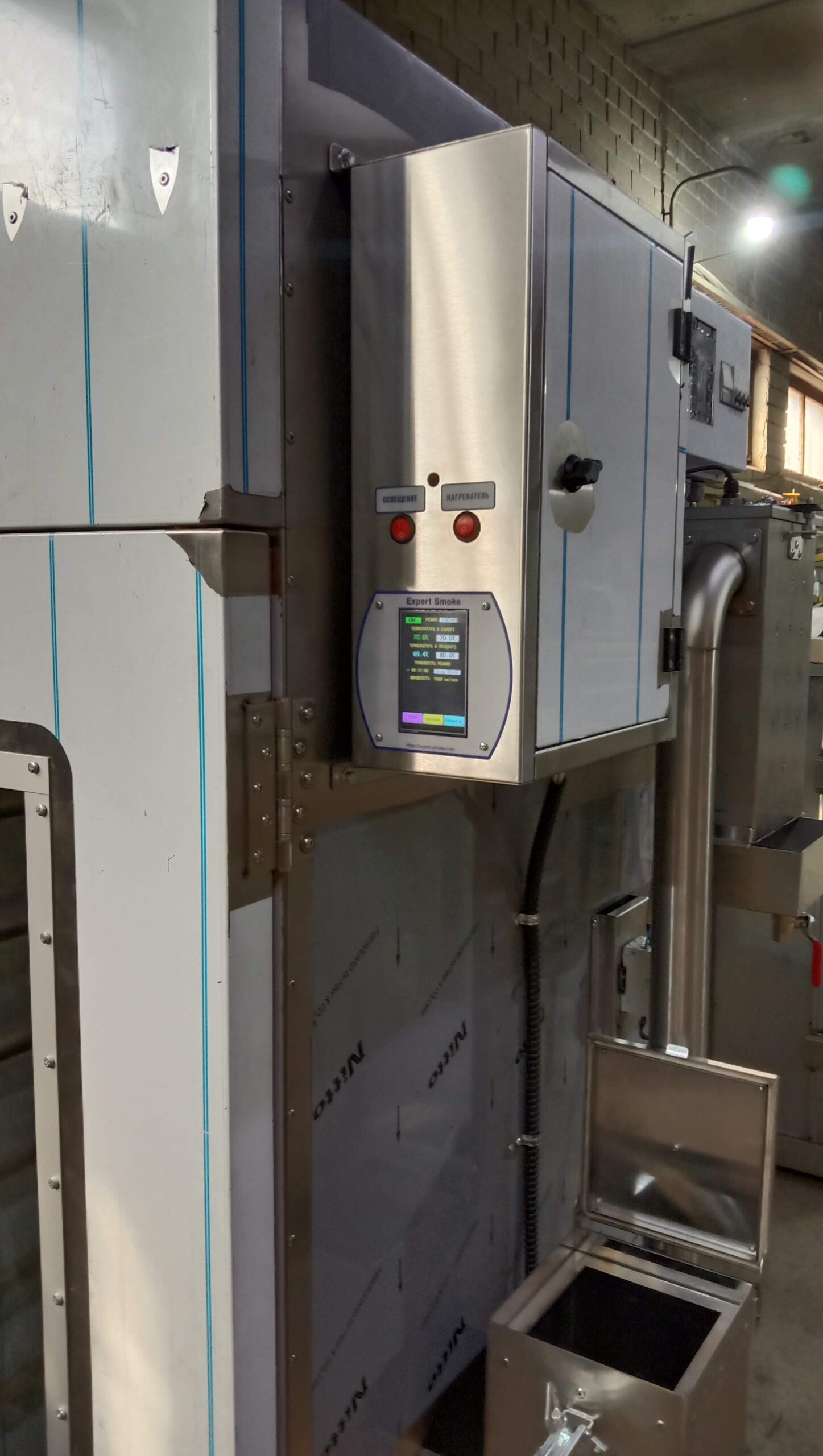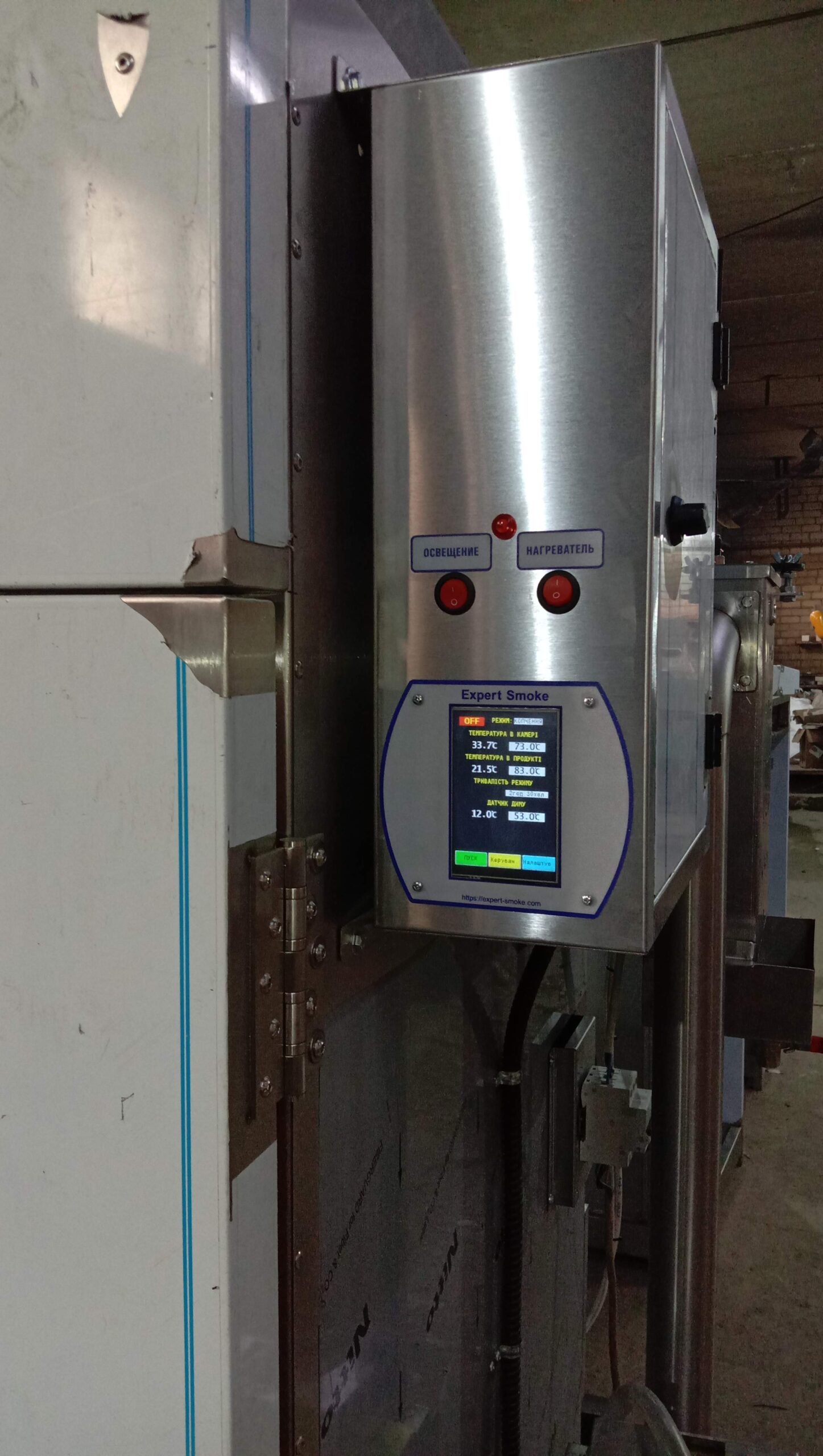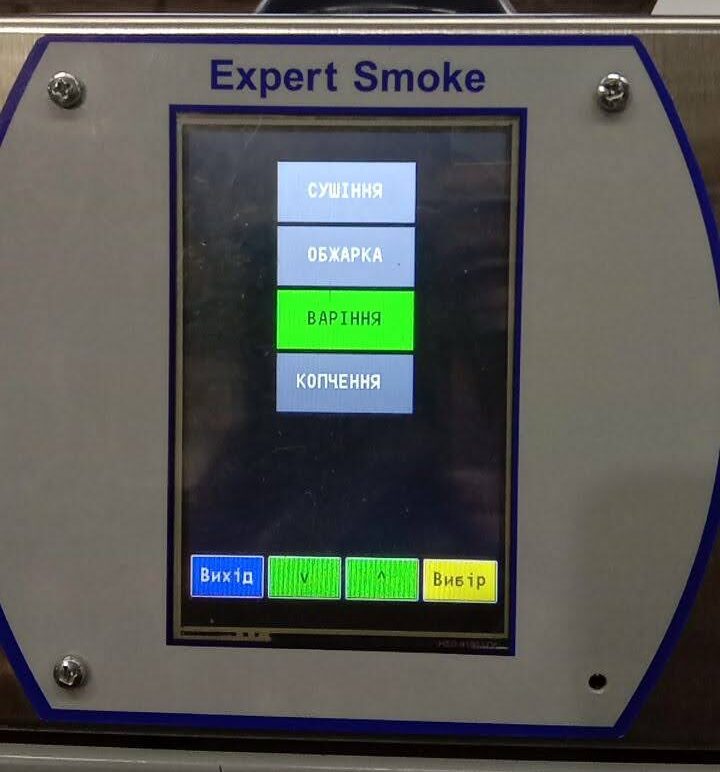 Коптильна камера оснащена сучасним контролером з регулятором температури і вологості та таймером для автоматизації процесу копчення. Інформація виводиться на кольровий сенсорний екран. Просте меню дозволяє швидко навчитися користуватися контролером. Меню режимів дозволяє записати параметри для чотирьох режимів: сушіння, варіння, копчення, обсмажування.