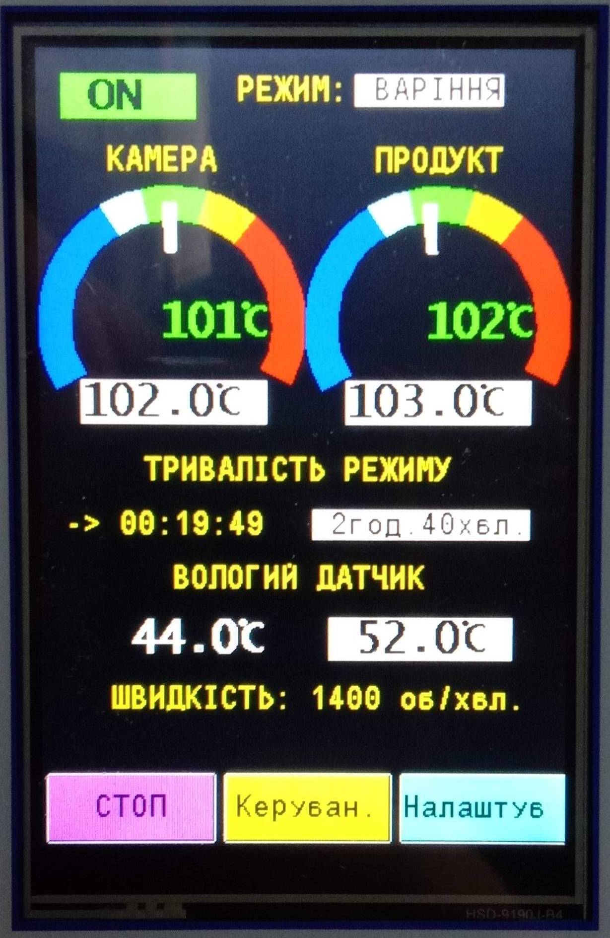 У процесі приготування продукції оператор вибирає в меню необхідний режим, натискає Пуск.