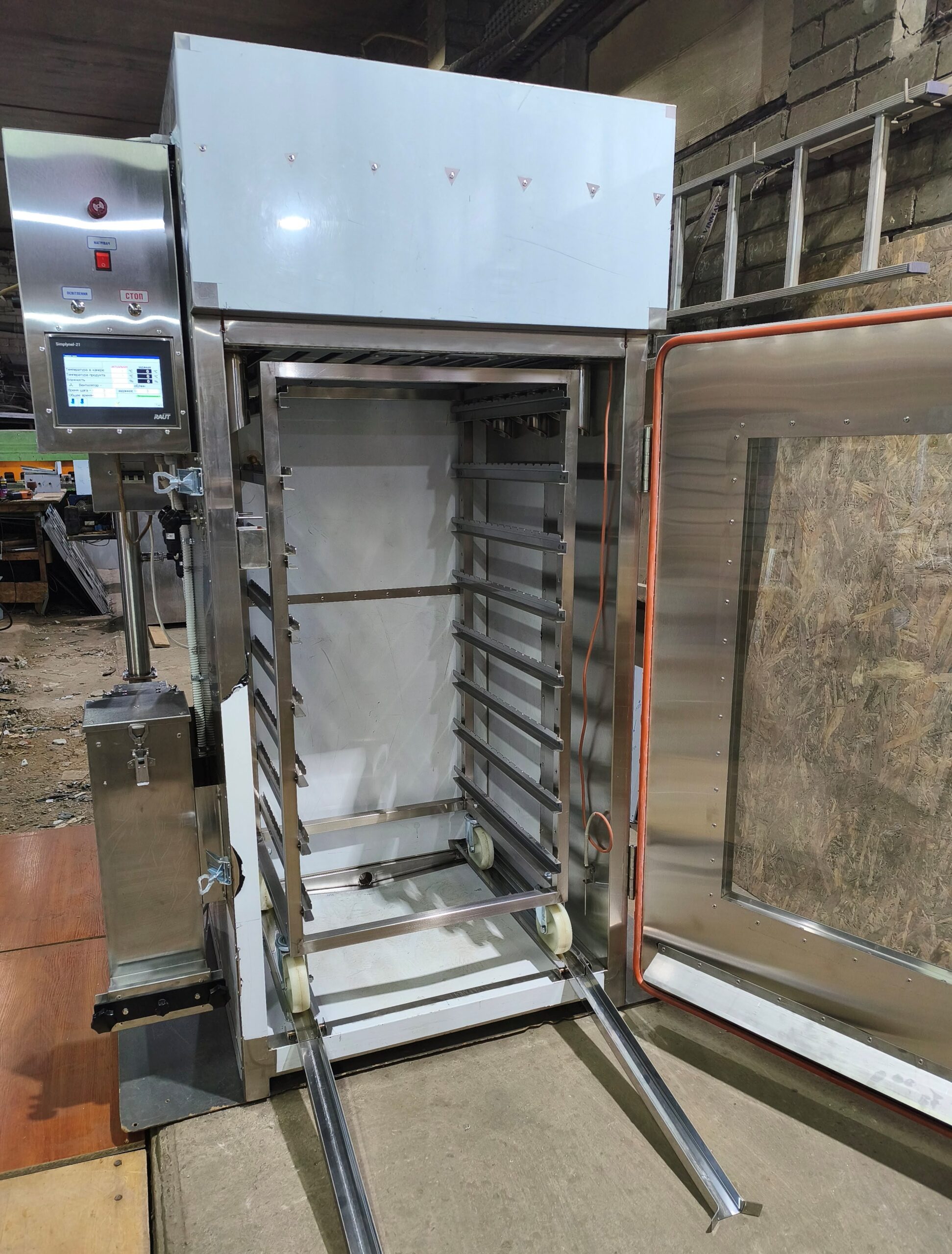 Виконує режими: в’ялення, сушіння, варіння, обсмажування, копчення – тобто повний цикл виготовлення м’ясних і рибних продуктів.