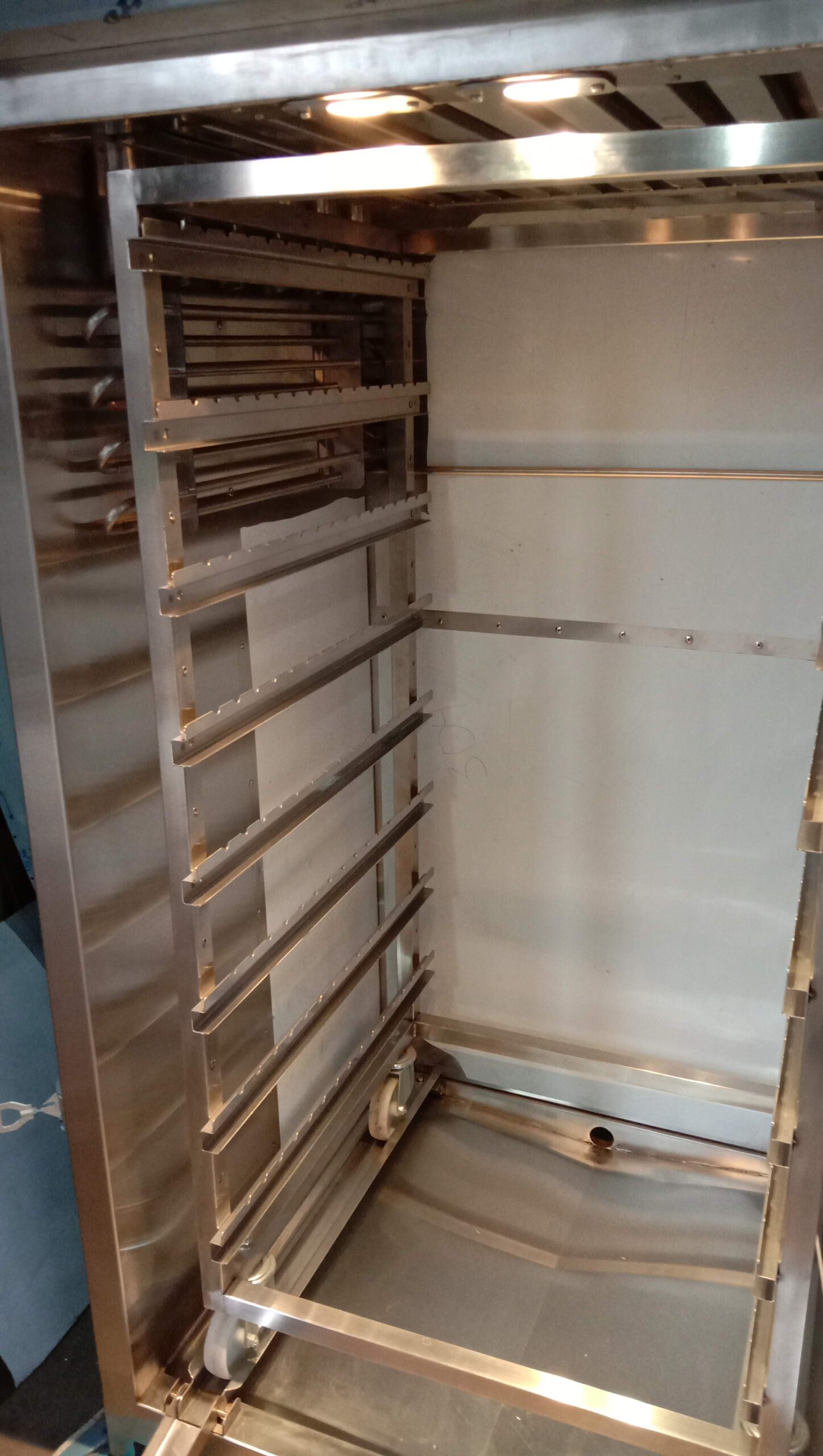Корпус камери виготовлений повністю з довговічного й безпечного для здоров’я матеріалу – нержавіючої сталі. Внутрішня частина камери виготовляється з нержавіючої сталі AISI304 завтовшки 1.2 мм, зовнішня AISI430/201. Якісна теплоізоляція – фольгована базальтова вата завтовшки 50 мм, забезпечує мінімальні втрати тепла та зменшує витрату електроенергії. На дверях встановлений якісний силіконовий термостійкий ущільнювач, який забезпечує герметичність камери. В дверях встановлений подвійний склопакет, у камері передбачено освітлення.
